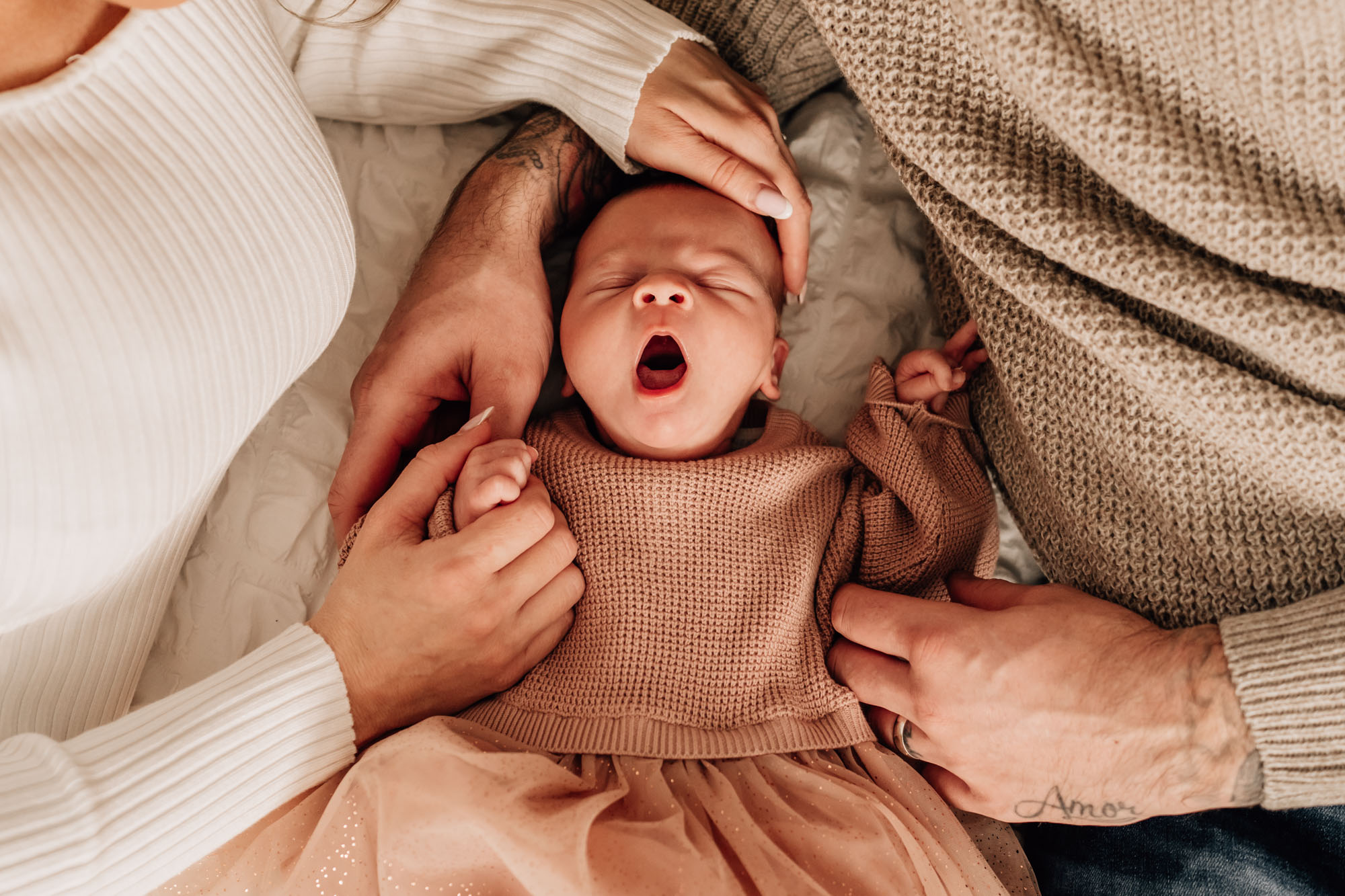 I recommend anywhere between 5 and 14 days after birth for the shoot to take place, however the beauty of a lifestyle shoot is that going over that 14 day mark doesn’t really matter – you’ll still get beautiful photos! It’s more important for a more traditional, posed newborn shoot that it takes place in that window, as then it’s easier for the photographer to achieve the poses that are expected. With a lifestyle approach, any age is great, but capturing the squishiness of the first few weeks is something that a lot of parents look for.
